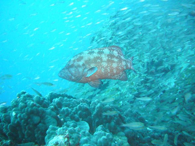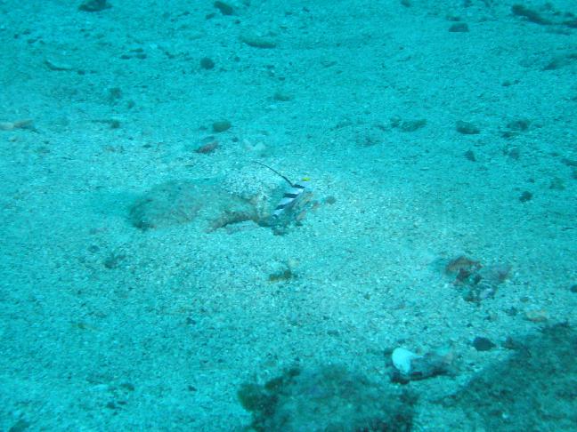 ここはビーチポイントですが、エントリーはジャイアントストライド。水深はエントリー口付近こそ5m前後ですが、急な斜面を下ると、すぐに10m前後の水深となります。そして、しばらく進むと砂地が広がり、水深は25m程に。かなり深いです。