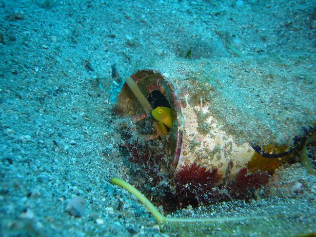 透明度は前日と違ってやや落ちて8~10m。水底も砂というより泥のような感じで、巻き上げるとしばらくは視界が遮られます。水温は19℃前後。前日よりも気持ち冷たいかなと感じる程度でした。