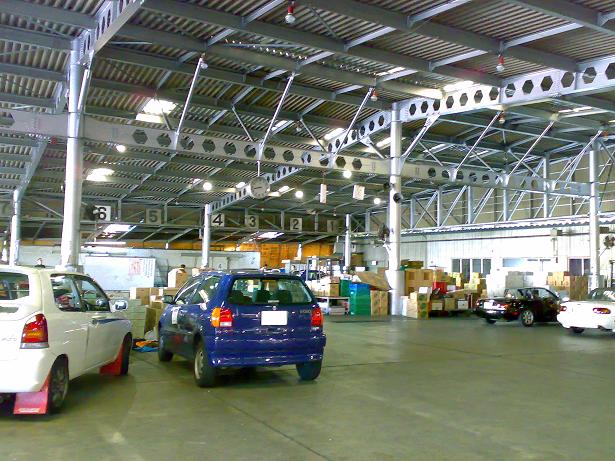 1年以上あいだが空いてしまいましたが、行ってきました。今回は、CRECENTさん主催のジムカーナ練習会に参加させていただきました。参加台数は24台。場所はなんと、平塚中央青果市場。写真は一瞬どこかの修理工場の様ですが、青果市場内の休憩スペース。周りはゴボウやミカンの箱、そしてパレットが山積です。ここでは、積んである野菜・果物に排気ガス等がかからないよう、細心の注意が払われます。そんなわけで、駐車は前から。雨の日は便利ですね。