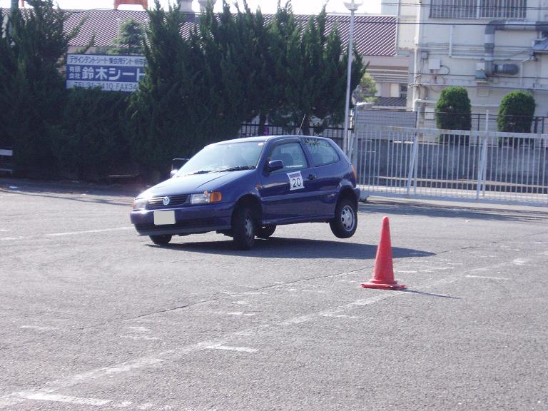 同じような写真ですが、別のトライアルです。ボクも写真で見て分かったのですが、今回かなり、3輪走行が多かったようで・・・・。がんばりすぎ?後輪の両輪が一本の棒で剛結されているトーションビーム型式のポロでは比較的こうなってしまいやすいですが、こうしてみると、結構無茶してますね・・・知人からは「ハイグリップタイヤ履いたらコロッと行くね(笑)」という暖かいご忠告を頂きました(^^;)