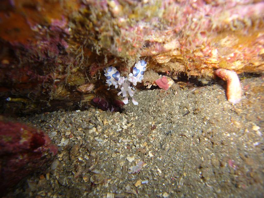それでも何とか見つけることができました。年末から見られたフリソデエビです。写真右に写っているのはヒトデの足。