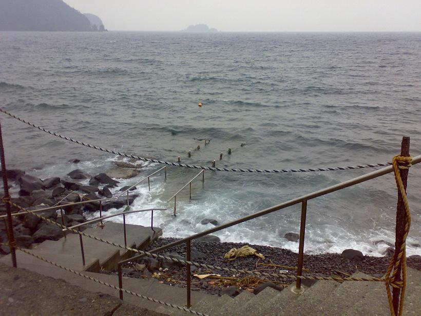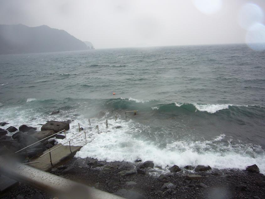 写真は一本目エギジット直後に撮影したエントリ口。波高いですね。