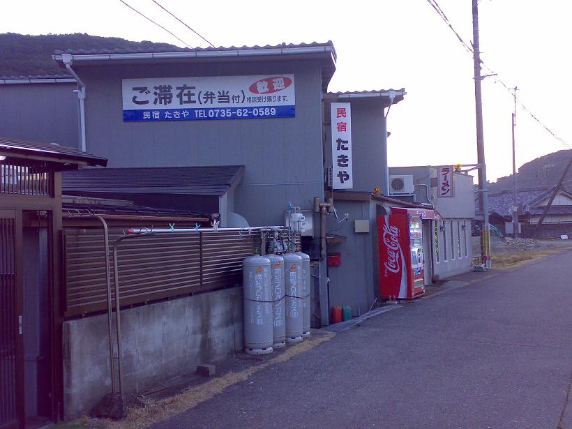 6:39 今回もお世話になった民宿「たきや」。出発です。時期的に宿泊者は自分ひとりなので、料理ではいろいろ厚いおもてなしをしていただきました。お世話になりました。