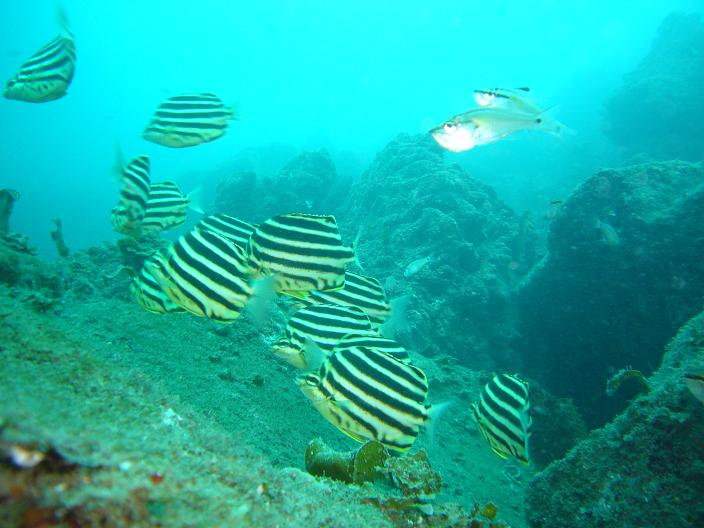 今日は、特にターゲットを設定するわけでもなく、のんびりダイビングでした。写真は、カゴカキダイ。群れは珍しいかなと思って撮影。