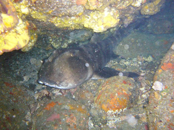 二本目のボートでは、ネコザメをゲット。全長はおよそ130センチで、自分が今まで見たネコザメの中では一番大きいです。特に頭が大きかった。写真はいろいろ映りこんでしまいました。