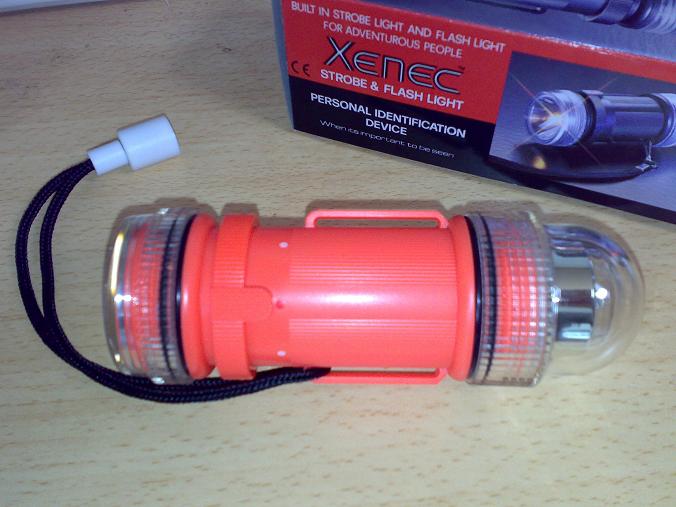 安いのは、1000円前後のものもありましたが、近所のダイビングショップでストロボタイプでしかもライトになるこれを見つけて方針転換。値段はちょっと張ってもいいかなということで購入。