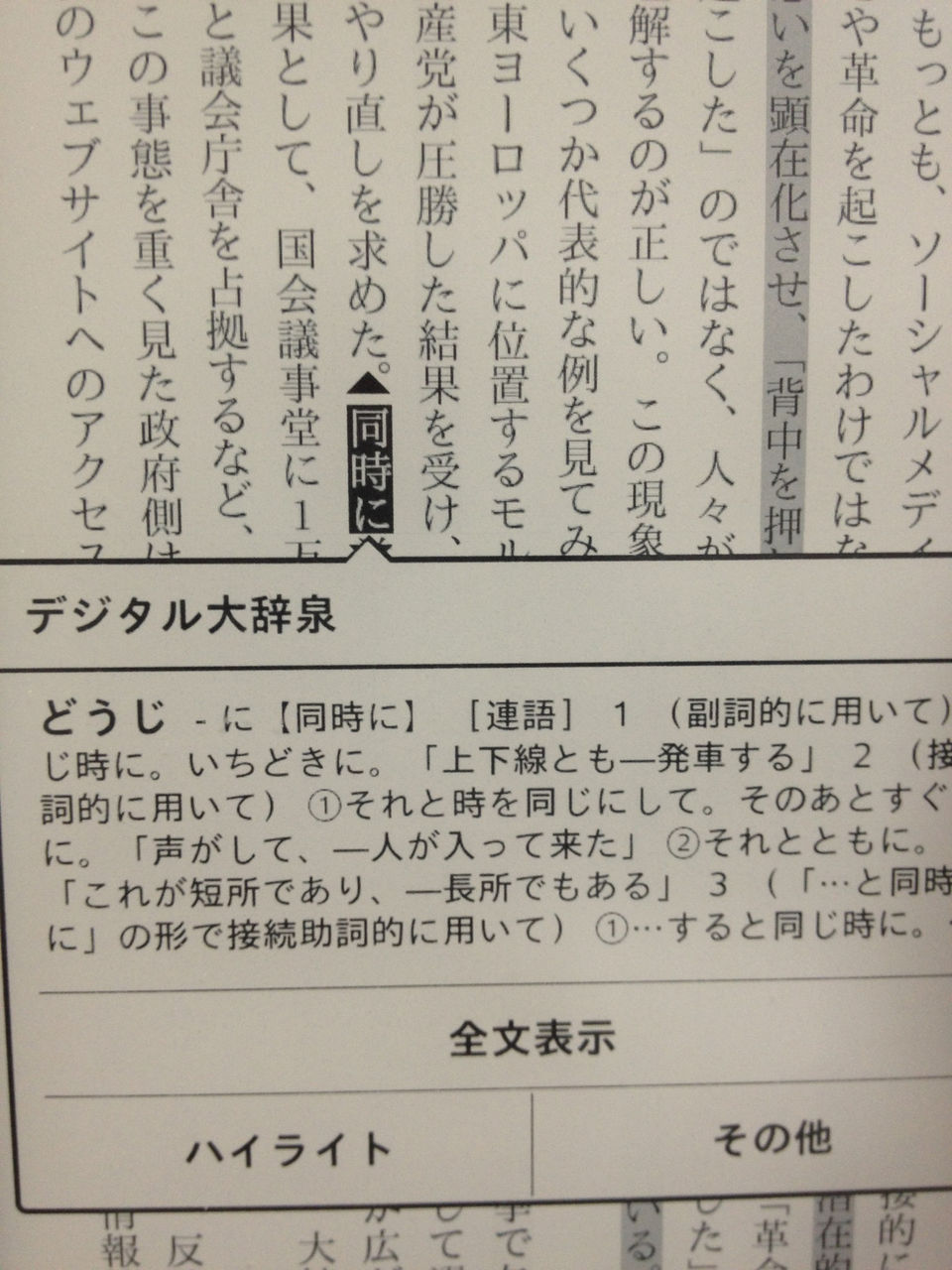 こんなかんじで、ハイライトした箇所がまとめて表示されるのだ。この機能はおそらく他メーカー端末でもできると思うけれども、これは電子書籍端末ならではの機能でとても便利だと感じた。