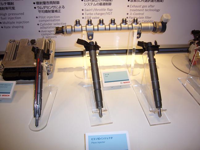 これはボッシュのブースで展示してあったインジェクションという部品。エコディーゼルを語る上ではずせない部品です。この部品によって高圧力・高精密な噴射が可能になり、燃焼効率向上、振動の軽減を実現したディーゼルエンジンが作れるわけです。