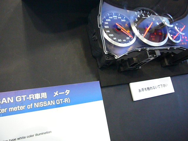 これはメータパネルを作成しているメーカーのブースで見つけたとある車のメーターです。340kmスケール。かなりの高性能車ですね。ヒントは左の写真に・・・