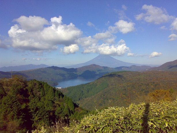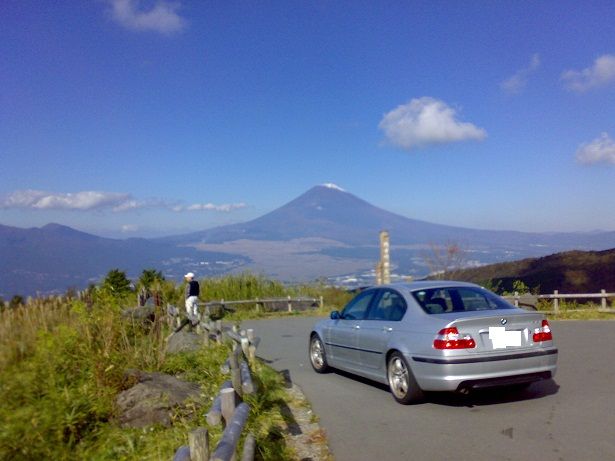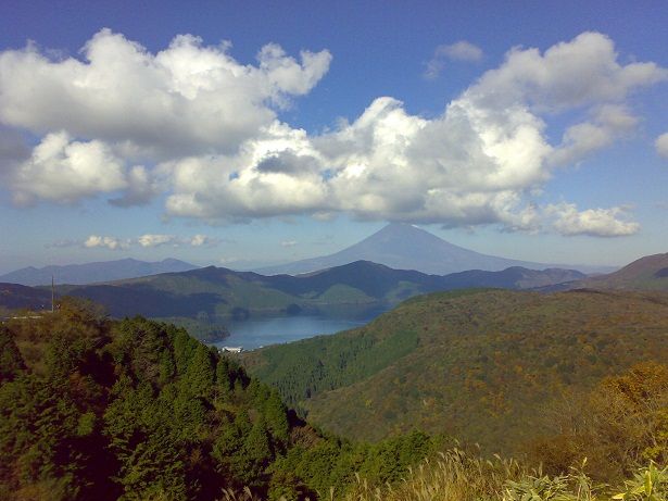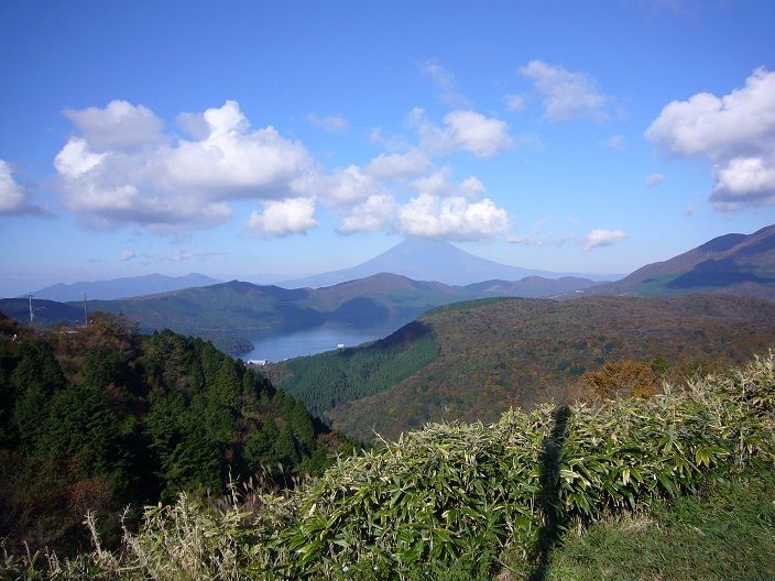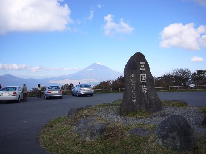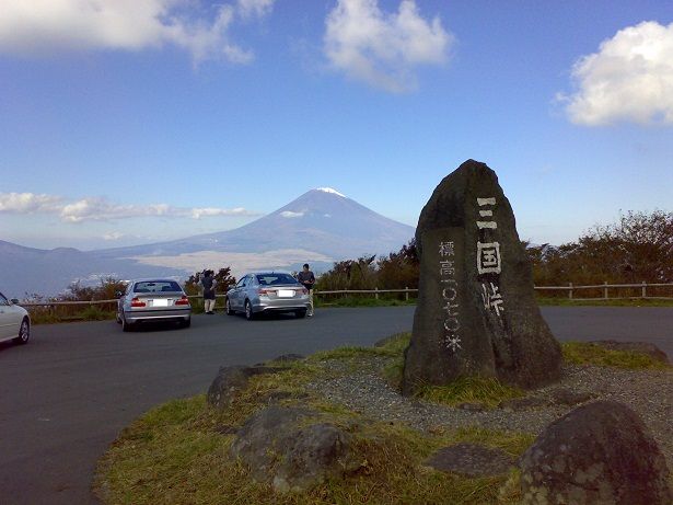三国峠にて改めて。峠の碑石(?)の側の草の色も鮮やか。富士さんもシルエットはっきり映ってます。