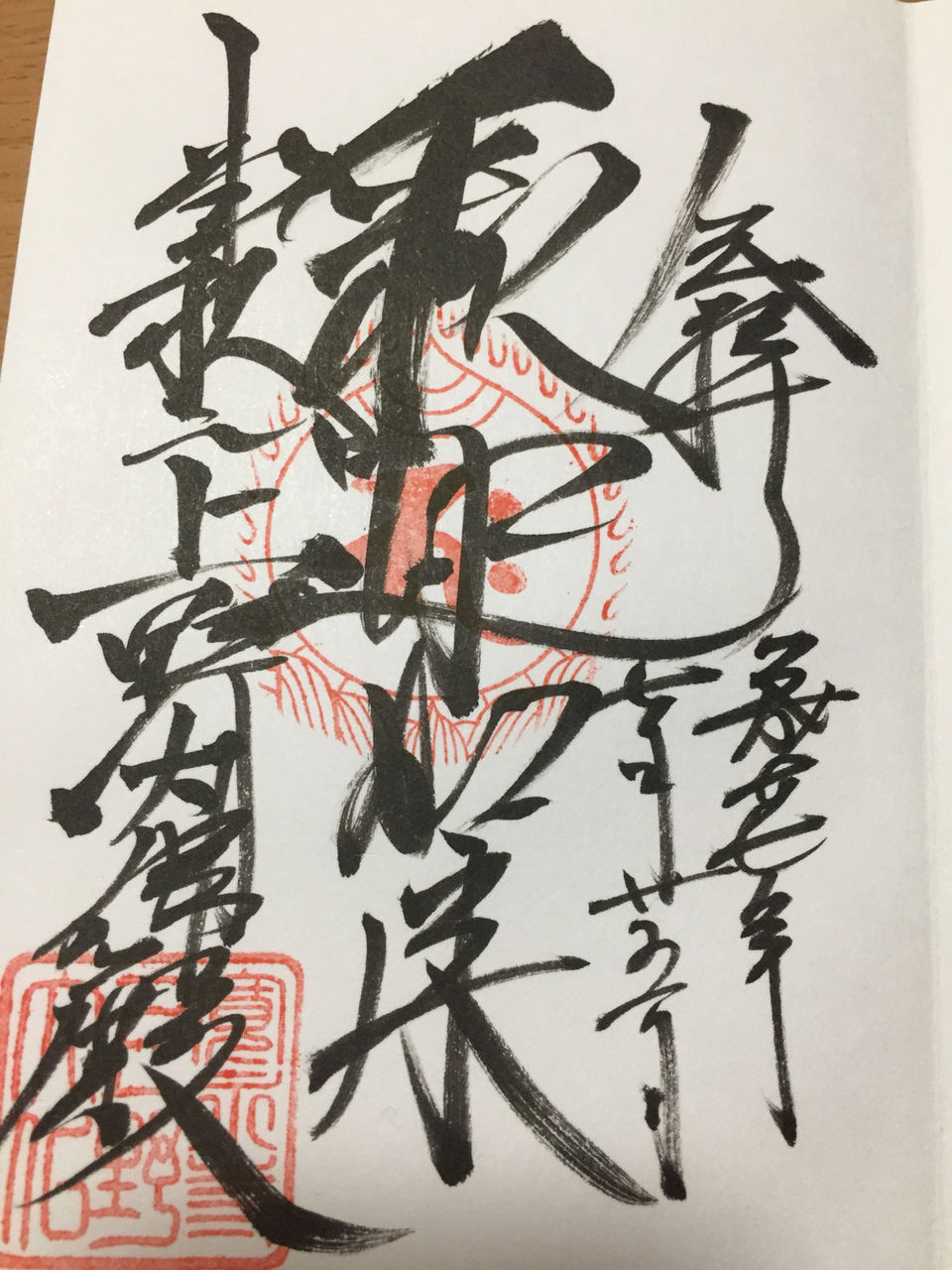 清水観音堂は上野駅側にある上野公園内にある。こちらでは、3種類の御朱印が頂ける。最初に千手観音。